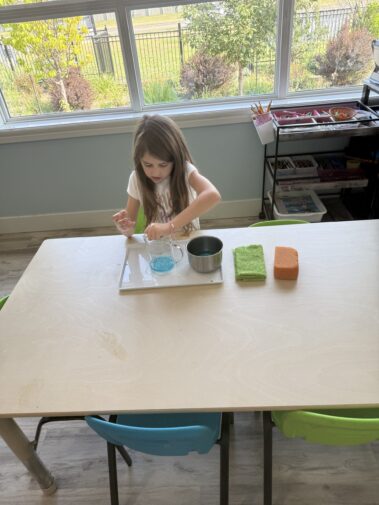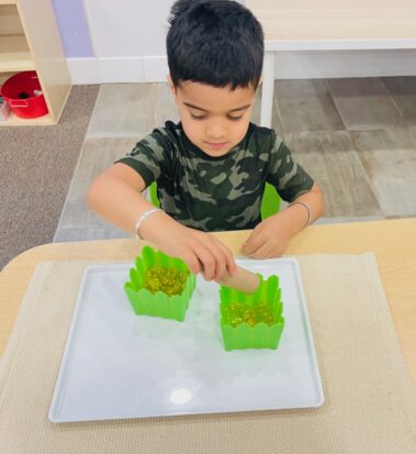 Respect for Self, Others, and the Environment: Practical Life activities cultivate a sense of responsibility and care for materials and the shared learning space, promoting respect for their surroundings and the people within them.